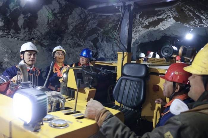 在辽宁排山楼,殷长波一行深入井下、选厂及5G智能中心现场调研,向干部职工转达了集团党委的新年祝福,并与大家亲切交谈。在听取辽宁排山楼有关工作情况汇报后,殷长波指出,辽宁排山楼文化底蕴丰厚,干部职工精神面貌良好,多年来上下一心、攻坚克难,为集团公司高质量发展和地方经济社会发展作出了积极贡献。殷长波强调,辽宁排山楼全体干部职工要深入贯彻落实习近平总书记关于国资央企和辽宁工作的重要讲话和重要指示精神,更加积极主动融入新时代东北全面振兴“辽沈战役”,为企业高质量发展和辽宁经济社会发展多作贡献,不断增强核心功能、核心竞争力。要进一步夯实资源根基,积极推动资源并购整合,大力推动“五区合一”和探矿增储,切实增强可持续发展能力。要进一步强化生产组织,全力实现稳产增产,不断提升矿产金产量,严格外购矿管控并实现单独核算。要进一步加强科技创新和成果转化利用,加大氰渣无害化处置、资源化利用工作力度,提升创新工作水平。要进一步加强安全环保,牢固树立底线思维和红线意识,抓好隐患排查治理,高标准落实好中央环保督察问题整改,不断提升本质安全能力和环境保护水平。要进一步加强党建引领,认真落实“第一议题”制度,推动党建工作与生产经营深度融合,积极总结凝练党建特色品牌,加强党的纪律建设,为企业高质量发展保驾护航。