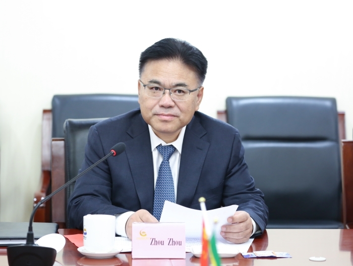 周洲对阿杜基一行的来访表示热烈欢迎,对刚果(布)在发展振兴道路上取得的巨大成就表示热烈祝贺,介绍了集团公司基本情况及在刚果(布)产业发展情况。他表示,今年是中刚建交60周年,中国黄金集团在中刚全面战略伙伴关系引领下,积极践行“一带一路”倡议,自2014年起长期扎根于刚果(布),推动刚果(布)黄金及有色金属产业布局,在刚果(布)政府的大力关心和支持下,投资开发的索瑞米铜铅锌多金属矿项目是刚果(布)第一座集采选冶为一体的现代化矿山,产出了刚果(布)第一块铜板、第一块锌锭,开创了刚果(布)矿业开发的历史先河。在努力创造经济价值的同时,深度践行ESG理念,积极履行社会责任,改善当地教育设施,完成多条交通线路及其桥梁修复工程,增进了民生福祉,促进了民心相通。衷心期盼双方不断深化业务合作,为促进刚果(布)经济教育发展、谱写中刚友好新篇章作出更大贡献。