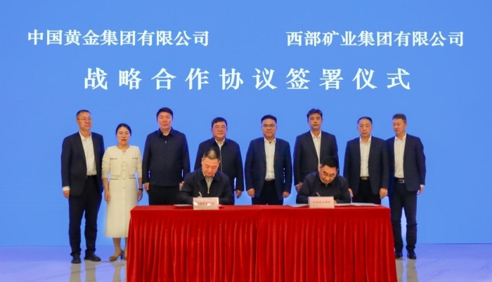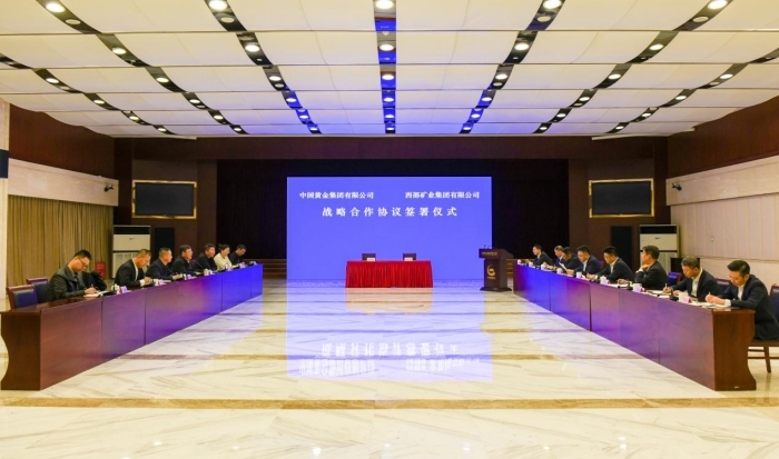 1月9日,中国黄金集团有限公司与西部矿业集团有限公司战略合作签约仪式在集团公司总部举行。集团公司党委书记、董事长周洲,西部矿业集团党委书记、董事长张永利出席签约仪式并致辞。集团公司副总经理姜良友主持签约仪式。