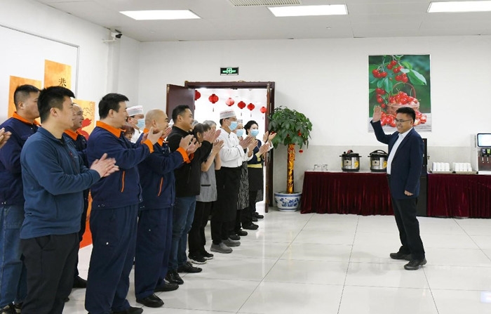 同吃团圆饭,共享“家”情怀。走访结束后,周洲在总部食堂同大家共享了特地为在岗职工准备的暖心团圆饭,现场气氛温馨热闹,其乐融融。职工们纷纷表示,虽不能与家人相聚,但是在公司吃到了这份别样的团圆饭,心就到“家”了。