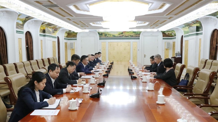 11月7日,中国黄金集团有限公司党委书记、董事长周洲在集团总部会见了中国证券报党委书记、董事长、总编辑徐寿松一行,双方就深化合作、促进共同发展进行了深入交流。