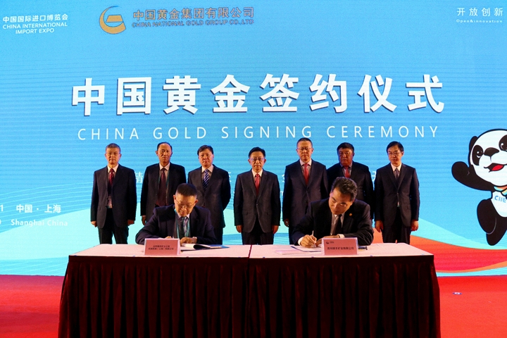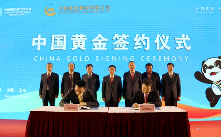 11月7日,中国国际进口博览会期间,中国黄金交易团在上海国家会展中心与外方企业举行签约仪式。此次签约将成为中国黄金与外方企业进一步扩大交流、加强合作的新起点,为双方互惠互利、共谋发展奠定新基础。