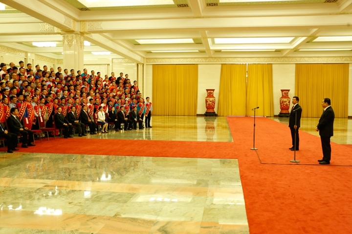 9月21日,中央企业先进集体和劳动模范表彰大会在人民大会堂举行,国务委员王勇出席大会并会见先进集体和劳动模范代表。国资委党委书记、主任郝鹏出席大会并讲话。国务院副秘书长孟扬出席会议。人力资源社会保障部副部长、党组成员张义全宣读表彰决定。国资委副主任、党委委员任洪斌主持会议。