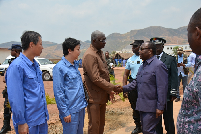 刚果(布)矿业和地质部长皮埃尔·奥巴、领土整治和大型工程部长让·雅克布亚、装备和道路养护部长埃米尔·沃索、内政地方分权和地方发展部部长级代表夏尔·恩冈富穆、总理府办公厅主任马本渡·里戈贝尔、布恩扎省长儒乐·穆佳拉·楚穆及省相关政府部门人员一行60余人陪同参观考察。