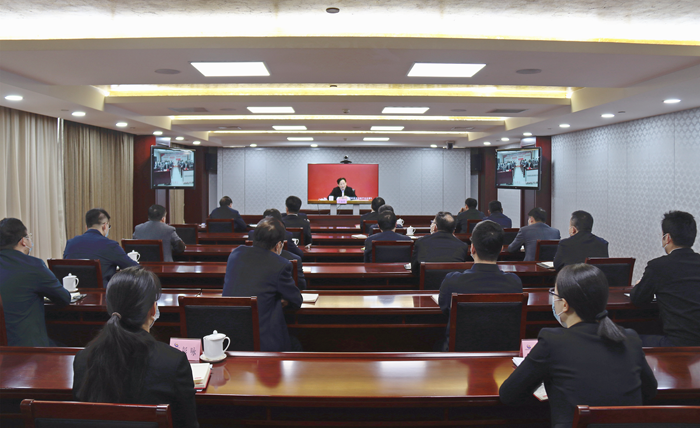集团公司领导班子成员在视频分会场参加报告会。