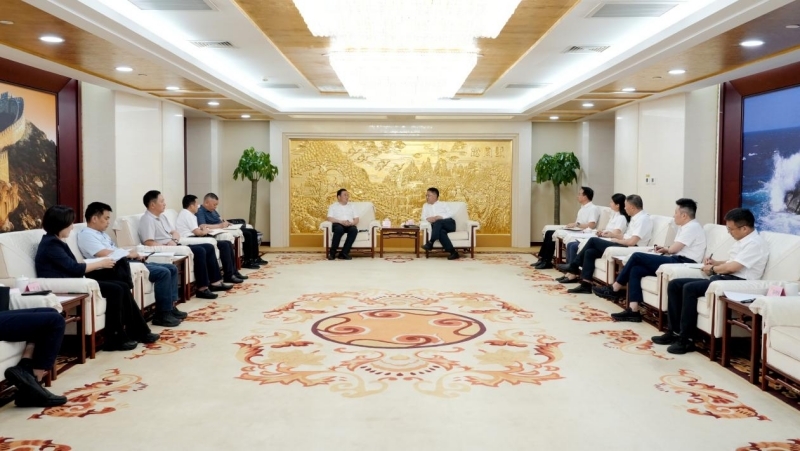 6月18日,集团公司党委书记、董事长周洲在北京总部会见了湖南省平江县委书记刘正仁一行。双方围绕深化央地协作,携手推动矿产资源开发、产业链延伸、文旅融合等领域合作达成共识。
