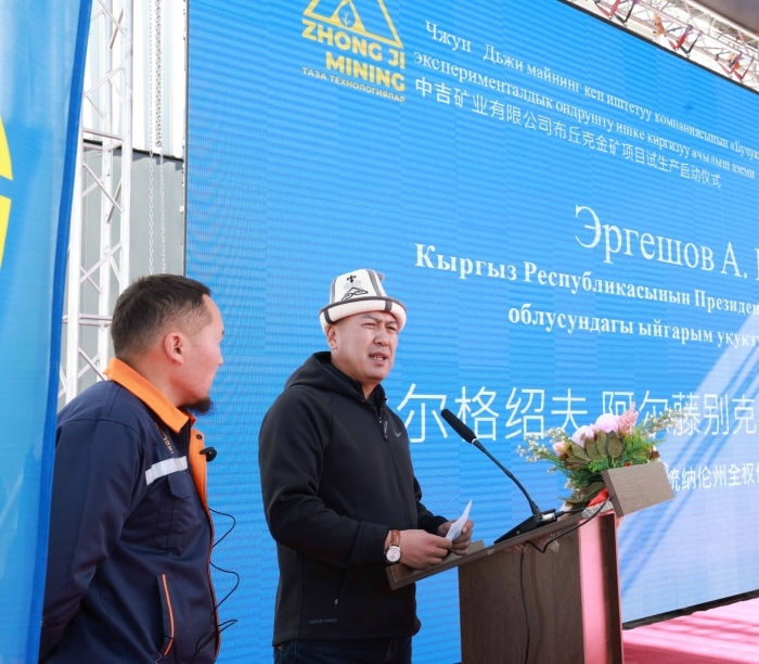 中国黄金集团有限公司党委副书记、董事、总经理殷长波在仪式上发表致辞。他表示,中国和吉尔吉斯斯坦山水相连,古丝绸之路见证了两国人民延续千年的传统友谊。“我们将以两国元首达成的重要共识为引领,推动布丘克项目打造成‘一带一路’建设在吉尔吉斯斯坦落地的生动实践,”殷长波说,为中吉两国深化合作、构建中吉命运共同体注入了新动力。