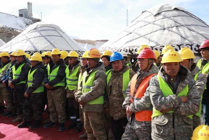 中吉矿业布丘克金矿项目举行试生产启动仪式上的公司工人们