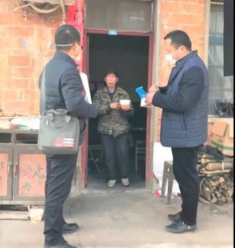 ▲突击队员入户发宣传单、口罩