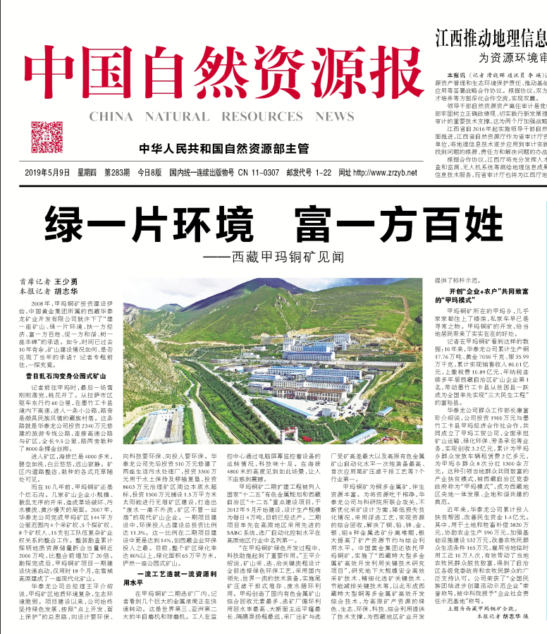 中国自然资源报 2019年5月9日 283期一版 绿一片环境 富一方百姓——西藏甲玛铜矿见闻
