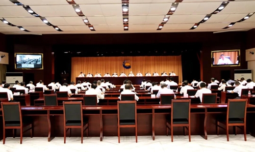 改革发展是2020年中国黄金的一项重要任务。图为中国黄金2020年年中视频会议现场。