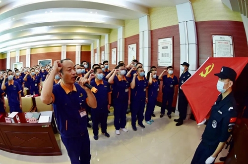 三鑫公司党委副书记杨培炎主持会议。会上举行了入党宣誓仪式,20名新党员面向党旗庄严宣誓,老党员重温了入党誓词。