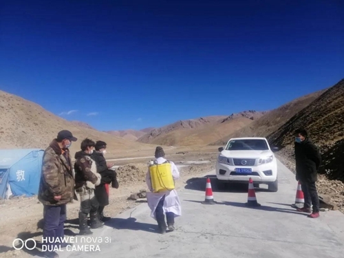 驻村工作队积极配合当地政府,在道路出入口设置卡点。